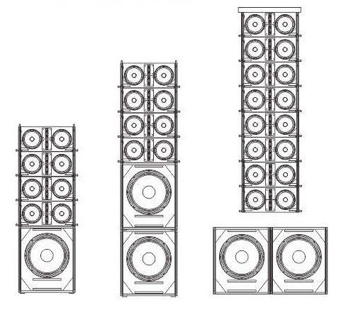 Loa line array có thể xếp chồng lên nhau hoặc treo lên cao, tùy theo quy mô sân khấu mà sử dụng từng số lượng loa array khác nhau